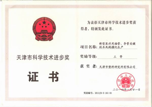 Home > About Us > Certificate of Tianjin Science and Technology Progress Award