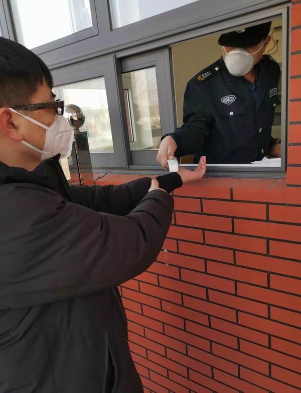 (每個人必須佩戴口罩,且經過“測溫+登記+消毒”三步驟方可放行。)