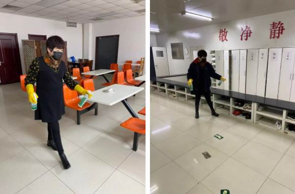 (保潔員在復工之前就已經行動起來,對公司的各個角落進行全方位的大清潔。)