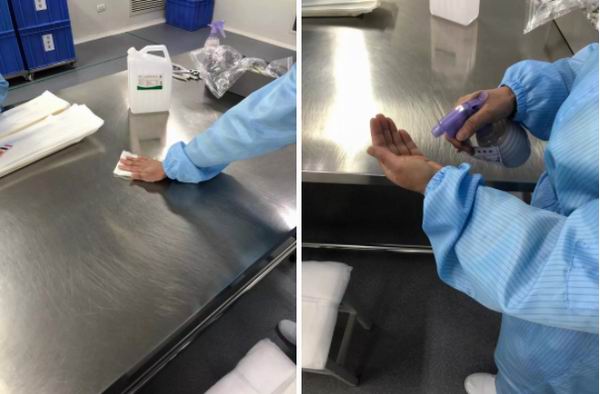 (公司貼心地為大家準備了酒精噴霧手消毒器以及配置好的84消毒水,方便大家使用)