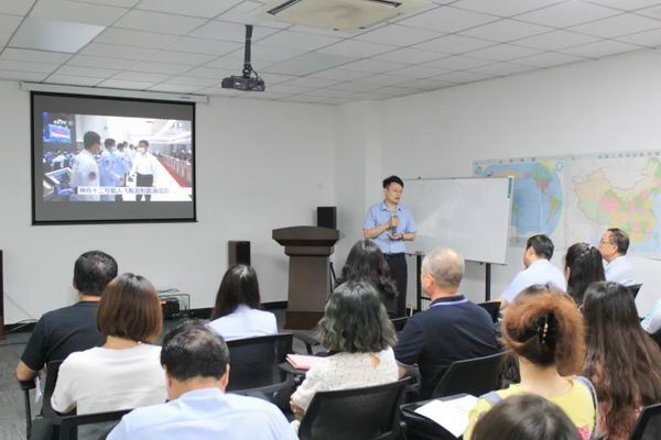 研發顧問王銘正高工對我司參與研制神舟飛船產品的歷史進行了講解,講述了研發初期大家團結一心,克服了種種困難,分享了見證國家載人航天任務成功完成的喜悅。